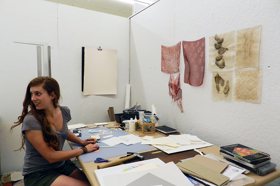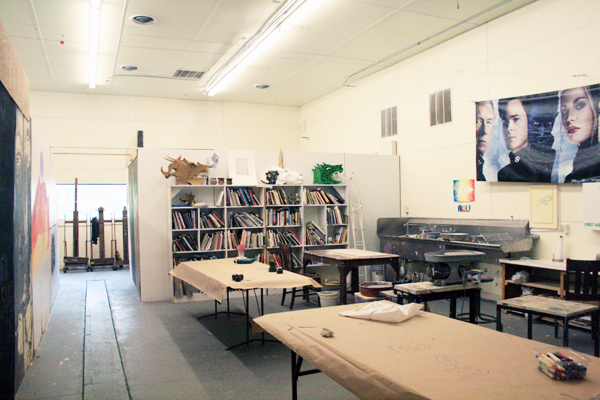 Main studio space is located in the building of a former tofu factory. The former factory floor is divided with 3/4 walls into large individual studio rooms.