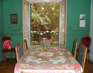 Accommodations: ArtHome comprises of a 3 bedroom apartment with 2 bathrooms, kitchen, living room, drawing/dining/workroom and balcony. The flat is boho chic with original features, chandeliers, Egyptian paintings, wooden floors and a lovely tree outside the balcony. Of the 2 guest bedrooms; one room has a double bed and the other room a single bed (with other beds available if sharing the room), both have wooden floors. The huge guestroom at the front of the premises has its own closed balcony with doors and is mainly been used as a workspace specifically for the visiting artist(s), with their sleeping quarters in the back bedroom; the back bedroom is an ample size and quieter due to its off road position. So essentially you get a bedroom AND your own huge workspace room for your money; unless the residency is fully booked in which case you would use the shared work and living areas.